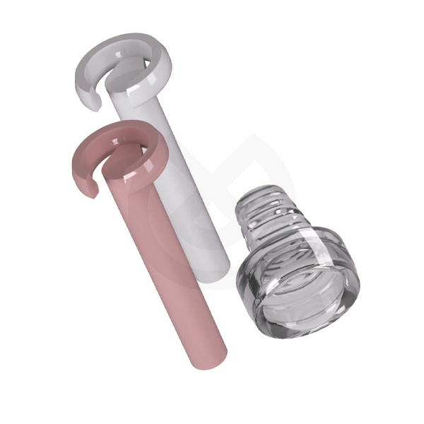 Kit Pilar Calcinable Extragrade sin agujero Ø4 mm; Contenido: 1 Pilar Calcinable Extragrade (Disponible solo con Ø4 mm) ,2 Seeger Blancos con mango, 1 Seeger Rosa con mango.