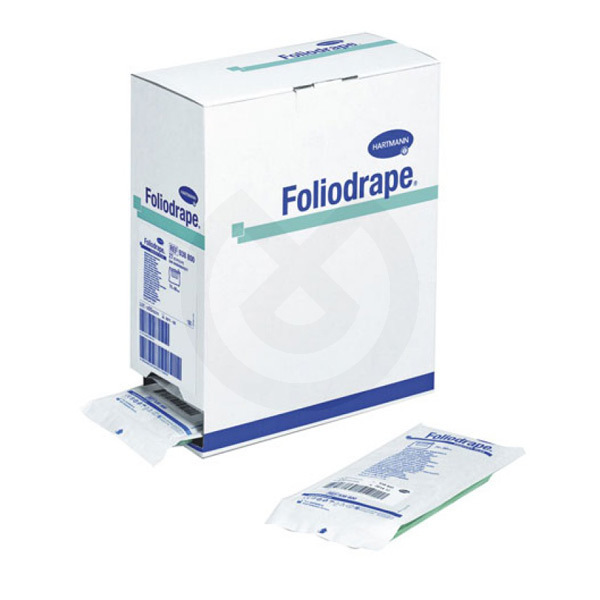 Campo quirúrgico fenestrado, con un agujero, para drapeado estéril del paciente. Los paños fenestrados Foliodrape son impermeables a los líquidos y bacterias, resistentes a la abrasión y al desgarro y con buen drapeado. Desechables.