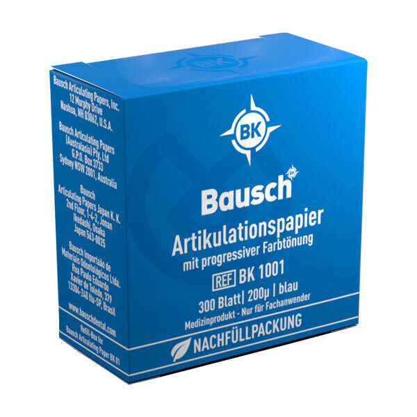 El papel de articular Bausch de 200 micras con coloración progresiva es ideal para visualizar contactos prematuros e interferencias existentes en las fuerzas masticatorias según la intensidad del color. Si la presión masticatoria es leve, dejará una marca de color claro. Si la presión masticatoria es fuerte, dejara una marca de color oscura.