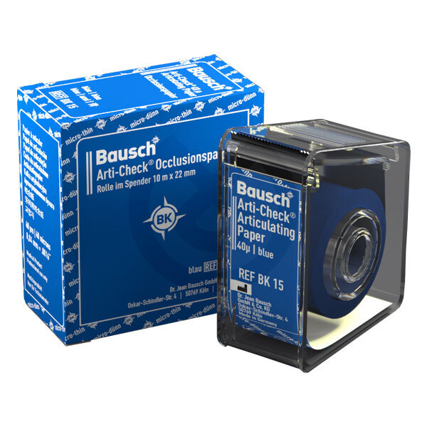 Los papeles de oclusión Bausch ultradelgados de 40 micras son papeles extremadamente delgados y resistentes al rompimiento, que están cubiertos por ambos lados de colores líquidos. Estos papeles tienen una propiedad de marcación bastante precisa por su bajo grosor. Así se evitan contactos erróneos o borrosos. El recubrimiento especial con colores líquidos permite una marcación clara de todos los contactos oclusales o interferencias.