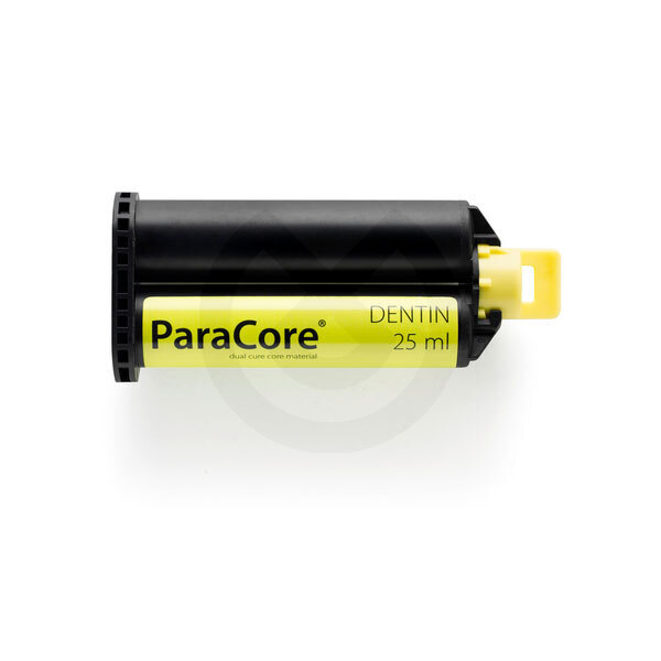 ParaCore es un cemento de composite de polimerización dual reforzado con vidrio, es radiopaco y disponible en dos tonalidades: dentina y blanca. Gracias a su consistencia cremosa, suave y que no gotea, ParaCore es el material ideal todo-en-uno. Debido a su tixotrópica formulación, ParaCore es especialmente atractivo para una aplicación a mano alzada. Debido a su densidad, similar a la dentina natural, el tallado no presenta defectos. ParaCore simplifica la técnica de restauración de pernos y muñones, ya que se puede utilizar como material 3 en 1 para cementación de pernos, reconstrucción de muñones y cementación de coronas y puentes. ParaCore también puede utilizarse en la cementación de inlays y onlays.