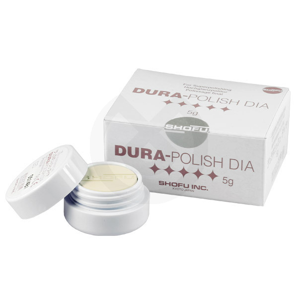 Dura-Polish Dia es una partícula llena de pasta de diamante pulida que se utiliza para lograr un acabado de alto brillo en todos los materiales dentales duros.