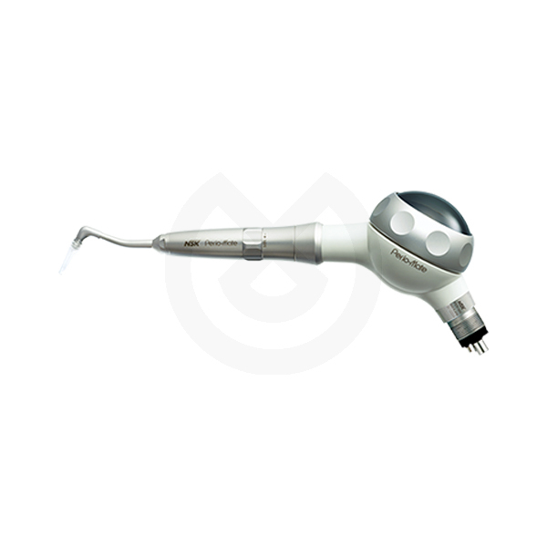 Las piezas de mano Perio-Mate se utilizan en el tratamiento de bolsas periodontales y periimplantitis. En los procedimientos de higiene oral, resulta fundamental evitar lesiones en los tejidos blandos y en las superficies de la raíz dentro de las delicadas bolsas periodontales. El pulverizador de agua ultrafino de Perio-Mate y su Polvo con base de glicina se aúnan para eliminar con delicadeza la película biológica de las bolsas periodontales en tan sólo 20 segundos. Gracias a los años de experiencia acumulados en el análisis de la dinámica de fluidos para desarrollar su tecnología de turbinas, NSK ha concebido un sistema de pulverización seguro y tremendamente eficiente que permite una eliminación precisa y rápida de la placa bacteriana presente en las zonas subgingivales.