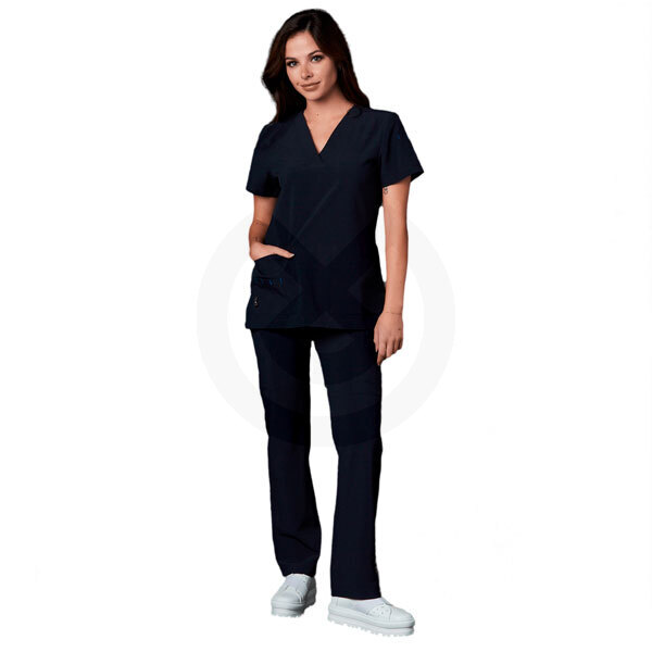 Conjunto sanitario con casaca slim fit de manga corta, cuello en V, multibolsillos y con hebilla portagafete. Pantalón jogger slim fit, resorte y jareta ajustable en cintura y con dos bolsillos delanteros.
