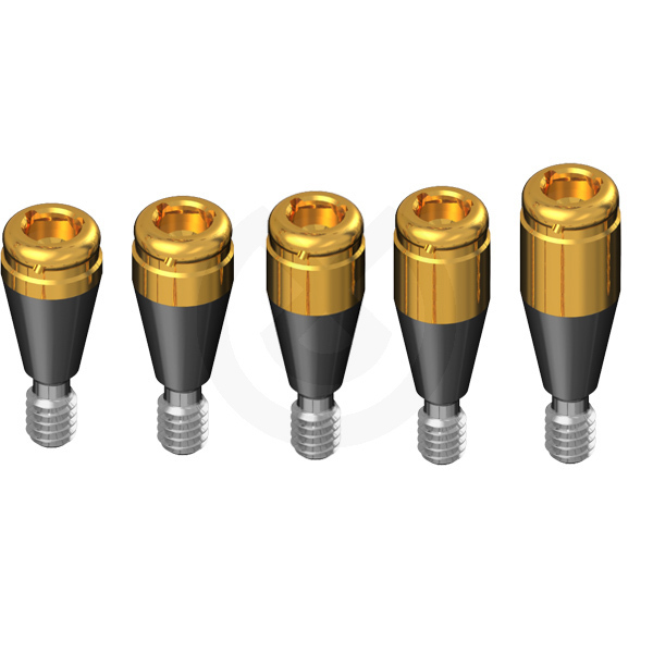 Sistema de anclaje supragingival de eje resiliente para sobredentaduras sobre implantes. Consta de dos elementos: uno metálico que se atornilla directo a implante y una cazoleta metálica que va colocada en la protesis, y contiene la retención de Peek. La altura gingival de los pilares pueden ser de 1, 2, 3, 4, 5 y 6 mm. Sugerencia de utilización: Las retenciones se pueden corregir angulaciones hasta 10°. El torque de aprieete sobre el implante no debe ser superior a 25-30Ncm