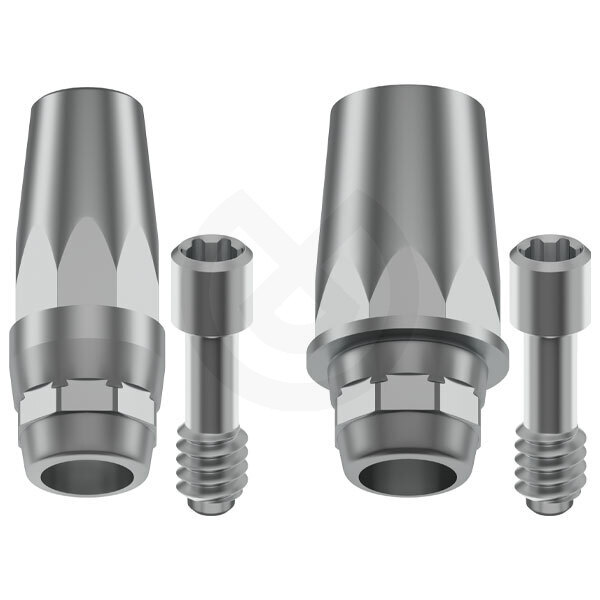Los pilares tallables para cementar y los pilares SYN para atornillar permiten una sincronización de ajuste óptima entre implante y pilar gracias a la mecanización