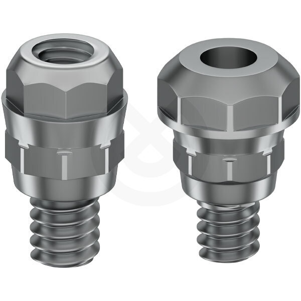 Los pilares tallables para cementar y los pilares SYN para atornillar permiten una sincronización de ajuste óptima entre implante y pilar gracias a la mecanización
