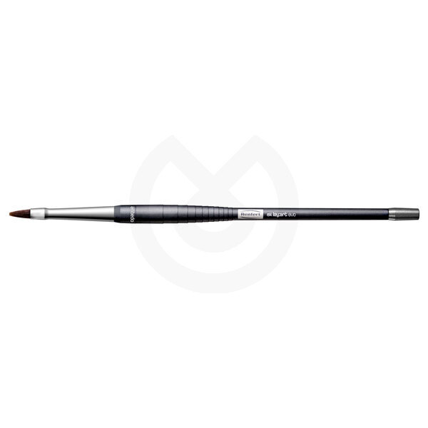 Pincel de pelo sintético. lay:art evo es un moderno pincel para cerámica con fibras biónicas. La composición química de los filamentos de fibra y su procesamiento único permiten que el pelo absorba la humedad e imite la forma de llama conocida de los pinceles de gama alta. Ambos factores representan la gestión de humedad característica que hasta ahora hacía que solo los pinceles de pelo natural fueran tan únicos. De este modo, el lay:art evo fascina por el gusto por el detalle en aspectos protésico dentales y por su pragmática funcionalidad.