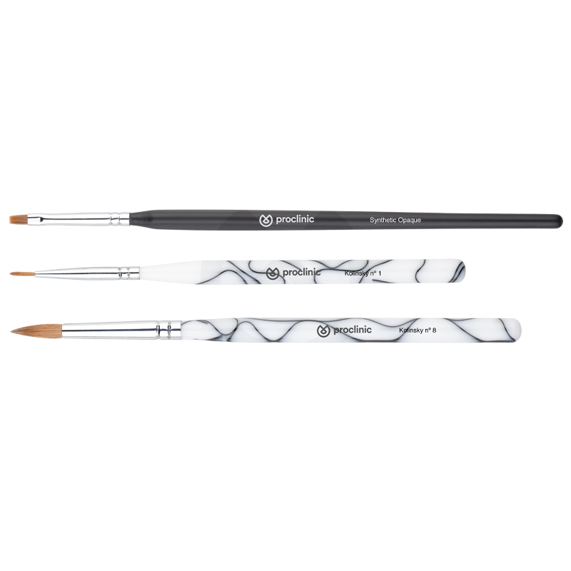Línea de pinceles Proclinic para el modelado de cerámica. Máxima calidad y elasticidad para trabajar de forma más directa y precisa. De pelo sintético, estos pinceles aseguran una gran durabilidad y facilita la limpieza con sólo agitarlos.