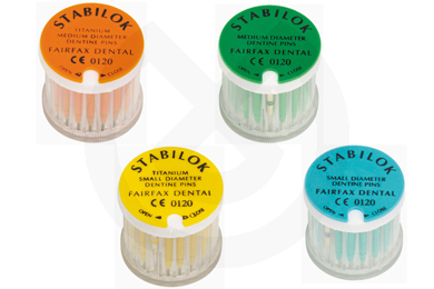 Color verde Ø 0,76 mm. Acero. Los Pins Dentinarios Stabilok suponen una forma eficaz y económica de proporcionar retención mecánica extra para las restauraciones de dientes anteriores y posteriores. Una vez colocados en el diente, pueden reducirse en longitud y/o flexionarse hasta que adopten la posición deseada. Una gran ventaja de los Pins Dentinarios Stabilok es que se pueden sujetar de forma segura en el mango de un contra-ángulo hasta que esté listo para cortarse automáticamente en el diente a la profundidad adecuada.