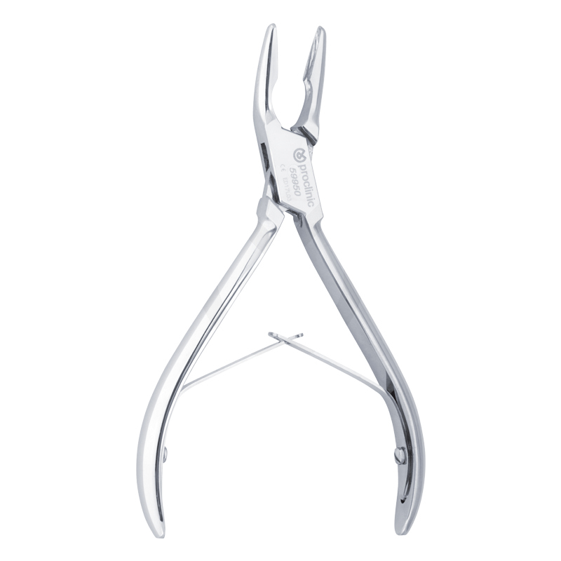 Pinzas de Gubia que permiten un corte eficaz del tejido óseo. Punta ligeramente curvada. 14 cm.