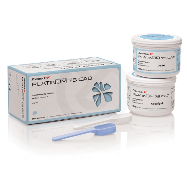 Explorable con sistemas CAD/CAM de lectura óptica, láser y táctil sin sprays reflectantes. La dureza 75 Shore A permite múltiples usos y un fácil acabado con bisturí o fresa. Tiempo de trabajo reducido (fraguado rápido, 4'). Color azul claro.
