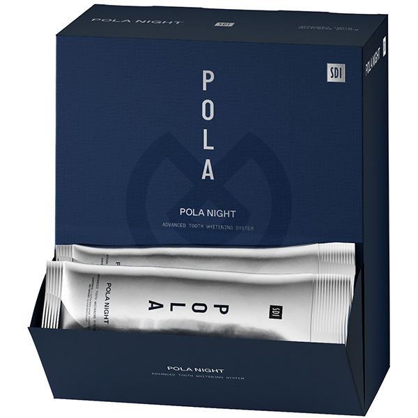 Pola Night contiene Peróxido de Carbamida al 10% o 16%: aplicación de 45 min/día. La alta viscosidad y ph neutro del gel de blanqueamiento dental aseguran la comodidad del paciente al utilizar el kit de aplicación en el hogar. La combinación exclusiva de acondicionadores, calmantes y su alto contenido de agua ayudan a reducir la sensibilidad. Asimismo, la formación de caries y placa dental se reducen significativamente. La gran variedad de concentraciones facilita el tratamiento de una amplia gama de situaciones en el paciente.