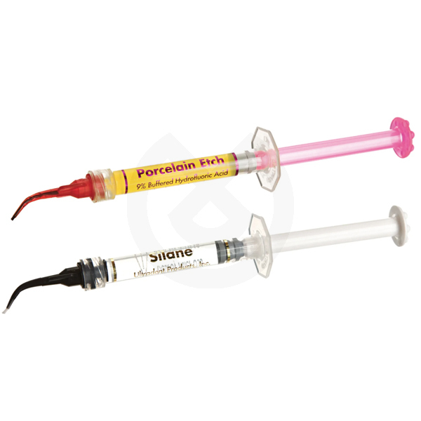 2 jeringas Porcelain Etch de 1,2 ml + 2 jeringas Silano de 1,2 ml + 40 puntas aplicadoras