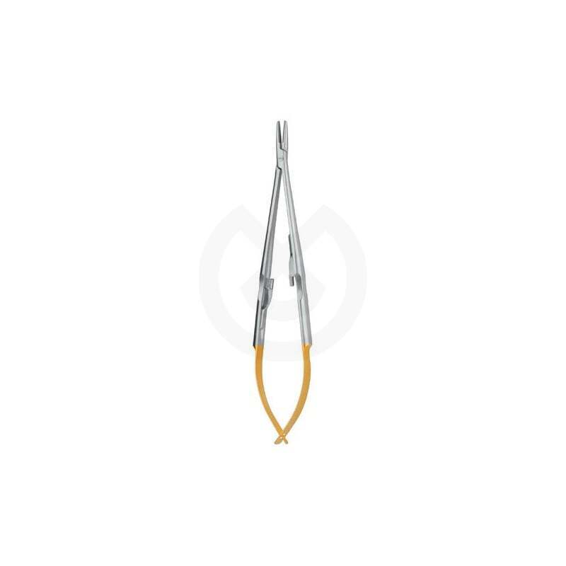 Porta agujas modelo Castroviejo con puntas de tungsteno. 16 cm.