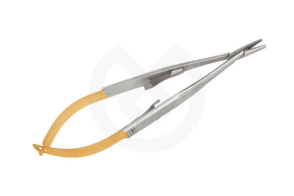 Pinza porta-agujas modelo micro castroviejo curvo.