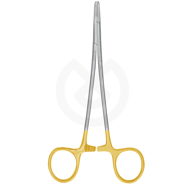 Portaagujas que proporciona un control y visibilidad excelentes durante la sutura. Con inserciones de carburo de tungsteno Perma-sharp, para un agarre positivo firme de cualquier aguja de sutura. 15 cm.