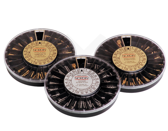 Postes roscados cilíndricos dorados bañados en oro con cabeza para llave hueca. Indicados en casos de restauraciones carentes de paredes retentivas hechas en composite.