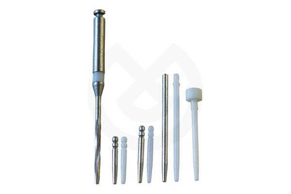 Postes calibrados para la reconstrucción definitiva y resina calcinable con Reposicionamiento Automático e intercambiable entre la impresión y el laboratorio: Técnica de reconstrucción por inlay-core. La cabeza original de Pivomatic cilindro-cónico forma un doble clip en el material de impresión permitiendo el Reposicionamiento Automático y el bloqueo exacto del poste en toda su longitud. Sistema completo con 6 diámetros y distintas longitudes en postes Cónicos o Cilindro-cónicos.