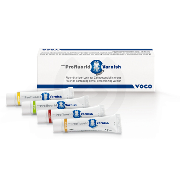 Profluorid Varnish es un barniz dental basado en colofonia que contiene 22.600 ppm de fluoruro (5 % NaF) para el tratamiento de hipersensibilidad dental y también puede ser utilizado como apoyo efectivo en el tratamiento preventivo de caries. Se puede aplicar en superficies húmedas.