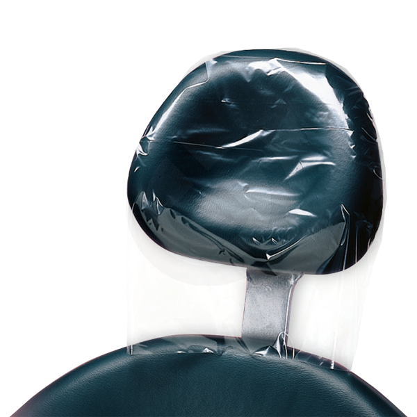 Protector desechable fabricado en plástico transparetnte para el sillón dental que se coloca sobre el reposacabezas para protegerlo.