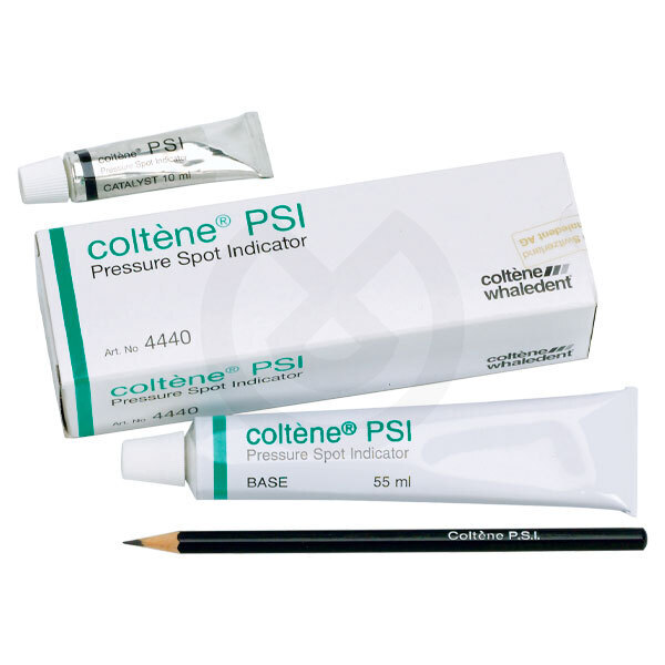 Indicador de puntos de contacto en prótesis, coronas y puentes. Indicador de puntos de presión. Material indicado para localización de puntos de presión, cuando se ajustan dentaduras nuevas. Previene la inflamación de la membrana mucosal. Debido a la suave consistencia inicial, incluso los más finos detalles de las partes blandas pueden ser determinados procurando alivio inmediato mediante el retoque de los mismos. Aplicación simple y sencilla. El material se quita fácil y limpiamente de la base de la dentadura. Posibilidad de usar si se necesitara para un rebase. Alivio de los puntos de presión para coronas y puentes.