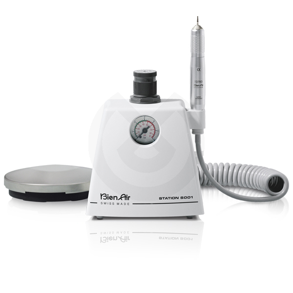 Estación neumática de sobremesa con turbina TD 783 sin spray. Muy estable y de dimensiones reducidas.
