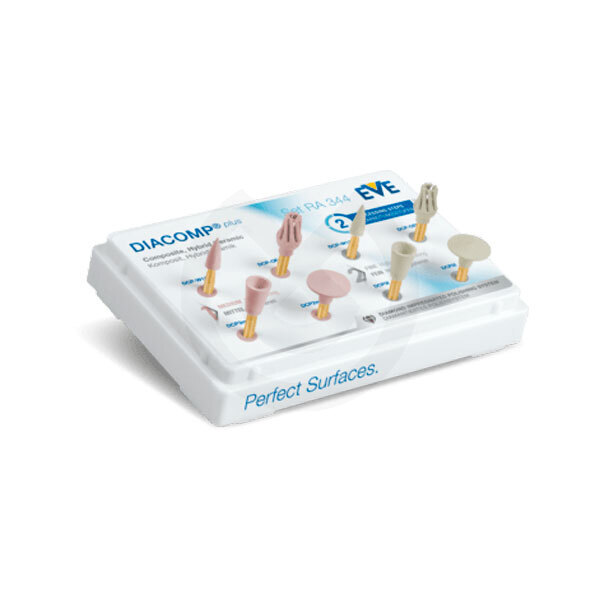 8 unidades: 4 pulidores rosas pre-pulido: 1× DCP-W11m (6181), 1× DCP2m (6172), 1× DCP3m (6173), 1× DCP-OFm (6175) + 4 pulidores grises pulido final: 1× DCP-W11f (6281), 1× DCP2f (6272), 1× DCP3f (6273), 1× DCP-OFf (6275)
