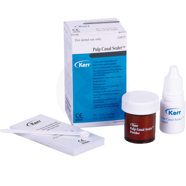 Pulp Canal Sealer es un material de obturación permanente para el canal radicular utilizado junto a puntas de gutapercha. A base de óxido de Zinc con eugenol. Fórmula no tóxica, no irritante y muy radiopaca. EWT: proporciona mayor tiempo de trabajo en el bloc de mezcla y en boca.