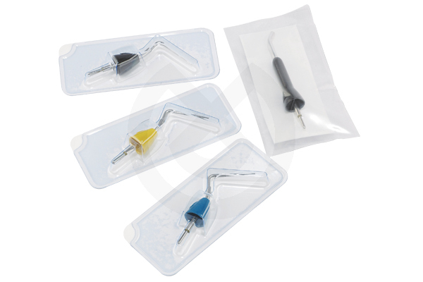 DOWNPACK 1 - Para comparación vertical. Compactadores coloreados según ISO. Intercambio sencillo de compactadores. Los compactadores pueden usarse para cortar la gutapercha. Con punta para hacer pruebas de vitalidad pulpar.