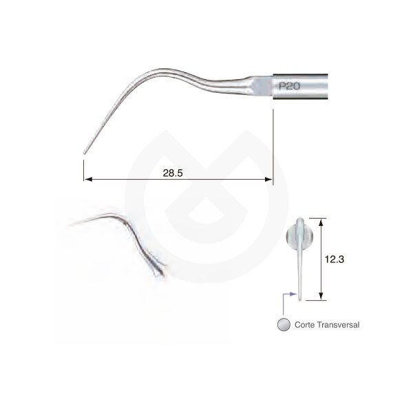Punta de ultrasonidos, para elimiación de la placa bacteriana a nivel gingival