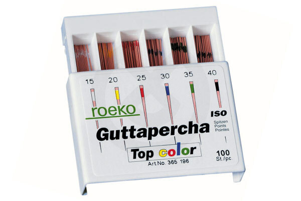 Puntas Gutapercha Top Color: Color rosa, con anillo de color identificación ISO, radiopacas, absoluta precisión de dimensiones, conforme norma ISO. Longitud: 28 mm. totalmente automatizada norma GMP.