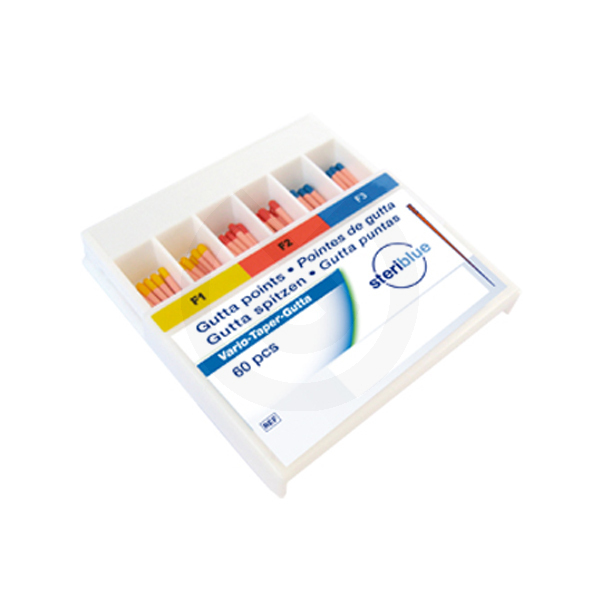 Puntas de papel Vario Taper, especialmente indicados para secar los conductos radiculares y para colocar medicamentos en la endodoncia. Con extremos superiores coloreados para una rápida identificación del tamaño de la punta.
