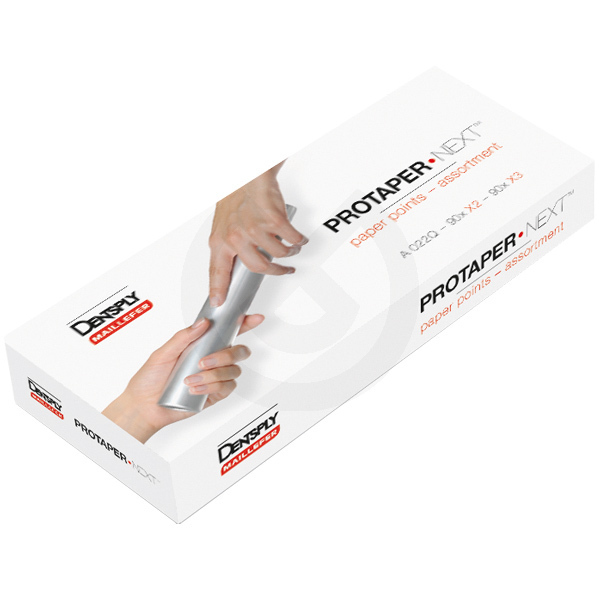 Puntas de papel para la principal innovación de Protaper Next: sección del instrumento, rectangular y descentrada. Genera un movimiento 'serpenteante' en el interior del conducto radicular. Además, el material M-WIRE NiTi, otorga a la lima más flexibilidad, así como una mayor resistencia a la fatiga cíclica.