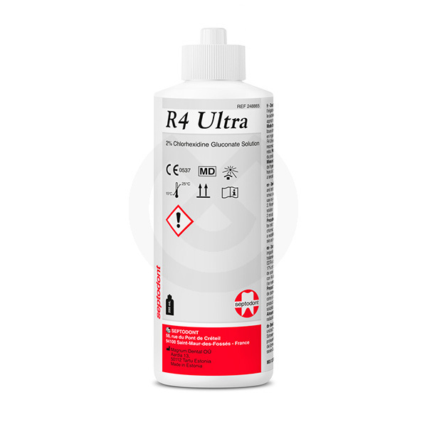 Solución de digluconato de clorhexidina (2%) para la irrigación y desbridamiento después de la instrumentación en el tratamiento endodóntico.