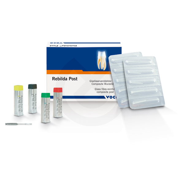 Poste radicular de composite reforzado con fibra de vidrio, un complemento excelente al material de reconstrucción de muñones y fijación, Rebilda DC. Con el Rebilda Post radiopaco y translúcido se consigue una restauración duradera, altamente estética y libre de metal mediante el uso de la técnica adhesiva.