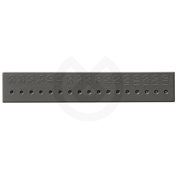 Regla calibradora de puntas de gutapercha para la calibración de puntas de gutapercha.