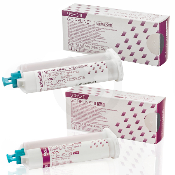 Cartucho de reposición de 62 grs. Rebase blando definitivo.GC RELINE SOFT es un material para rebases blando definitivo. En comparación con la resinas acrílicas blandas, GC RELINE Soft permanece elástico sin endurecerse a lo largo del tiempo, es estable dimensionalmente y muy fácil de limpiar. Indicado para actuar como amortiguador y dar resilencia a la dentadura en casos donde el tejido oral de soporte se ha perdido. Ventajas: - Permite la aplicación directamente sobre la boca del paciente. - Material a base de silicona con el que se obtiene una alta comodidad y larga duración. - Baja temperatura. - Sin olores. - Fácil de aplicar, sin mezclas, directamente desde el cartucho.