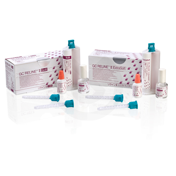 Rebase blando definitivo.GC RELINE SOFT es un material para rebases blando definitivo. En comparación con la resinas acrílicas blandas, GC RELINE Soft permanece elástico sin endurecerse a lo largo del tiempo, es estable dimensionalmente y muy fácil de limpiar. Indicado para actuar como amortiguador y dar resilencia a la dentadura en casos donde el tejido oral de soporte se ha perdido. Ventajas: - Permite la aplicación directamente sobre la boca del paciente. - Material a base de silicona con el que se obtiene una alta comodidad y larga duración. - Baja temperatura. - Sin olores. - Fácil de aplicar, sin mezclas, directamente desde el cartucho.