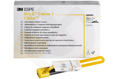 - Química autoadhesiva única para una fijación de alta resistencia.- RelyX Unicem muestra una descoloración muy limitada, asegurando estéticas de larga duración.