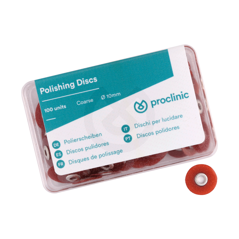 Discos de plástico para un excelente acabado y pulido. Especialmente diseñados para el pulido interdental, el sistema de Discos de Pulido Proclinic ofrece una solución completa para obtener un brillo superior en cada restauración. Muy flexibles, recubiertos con óxido de aluminio. Disponibles en cuatro granos de abrasividad y dos diámetros (10 mm y 14 mm) para cubrir todas las necesidades clínicas.
