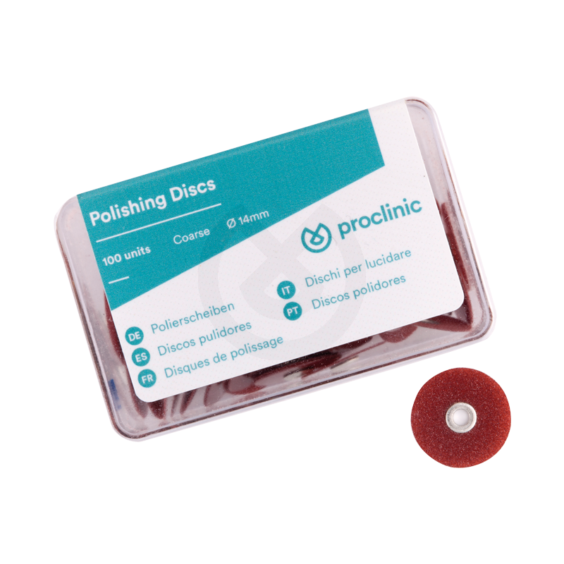 Discos de plástico para un excelente acabado y pulido. Especialmente diseñados para el pulido interdental, el sistema de Discos de Pulido Proclinic ofrece una solución completa para obtener un brillo superior en cada restauración. Muy flexibles, recubiertos con óxido de aluminio. Disponibles en cuatro granos de abrasividad y dos diámetros (10 mm y 14 mm) para cubrir todas las necesidades clínicas.