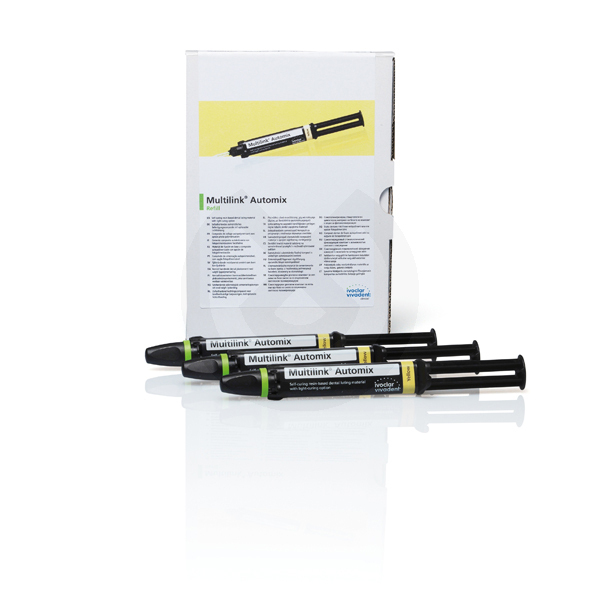 Multilink Automix es un sistema adhesivo de cementación de composite universal para restauraciones de cerámica de silicato y óxido-cerámica, metal, metal-cerámica y composites Fórmula optimizada, color blanco adicional, pastas de prueba (try-in) y manejo más sencillo.