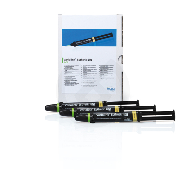 Variolink Esthetic es un sistema de cementación adhesiva de color estable para la cementación permanente de restauraciones de composite y cerámica. Variolink Esthetic se presenta en una versión puramente fotopolimerizable (Variolink Esthetic LC) y una versión de polimerización dual (Variolink Esthetic DC). El cemento está inspirado en los composites de cementación estéticos Variolink II y Variolink Veneer, que durante muchos años han demostrado su valor en clínica. Variolink Esthetic presenta una excepcional estabilidad del color. Esto es posible gracias al patentado, fotoiniciador Ivocerin®, cien por cien libre de co-iniciadores basados en amina. Variolink Esthetic constituye la base para unos resultados estéticos duraderos y fiables. Incluso si es sometido a una luz intensa o a un ambiente húmedo, Variolink Esthetic no está sujeto a cambios visibles de su color.