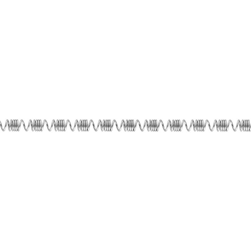 Tubo de 3 resortes. Longitud 18 cm. Tiene una fuerza ligera de 100 grs para conseguir una distalización media de 1,5mm cada mes sin que sea necesaria la colaboración del paciente. Coloque el resorte sobre el arco y anclarlo con un gancho y elásticos.