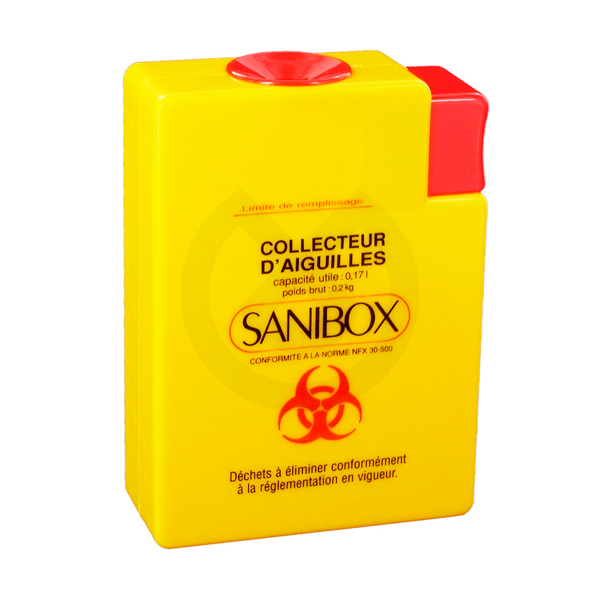 El contenedor de agujas Sanibox permite guardar herméticamente todas las agujas utilizadas que pueden entrañar riesgo de contaminación.