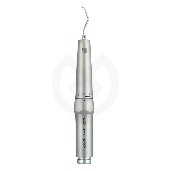 El escariador neumático S970 ofrece una amplia gama de potencias, con fácil ajuste giratorio de potencia y una amplia gama de Puntas para una gran variedad de aplicaciones, que van desde el escariado general, canales de riego y procedimientos mínimamente invasivos. El amplio rango de aplicaciones, confortable agarre y fácil mantenimiento hacen del escariador neumático S970 el instrumento de elección para los dentistas e higienistas por igual. Un cuerpo de Titanio de diseño elegante, sin fisuras, hacen del S970 muy agradable al tacto, incluso durante largos procedimientos, mientras que proporciona una excelente visibilidad del sitio de operaciones en todo momento