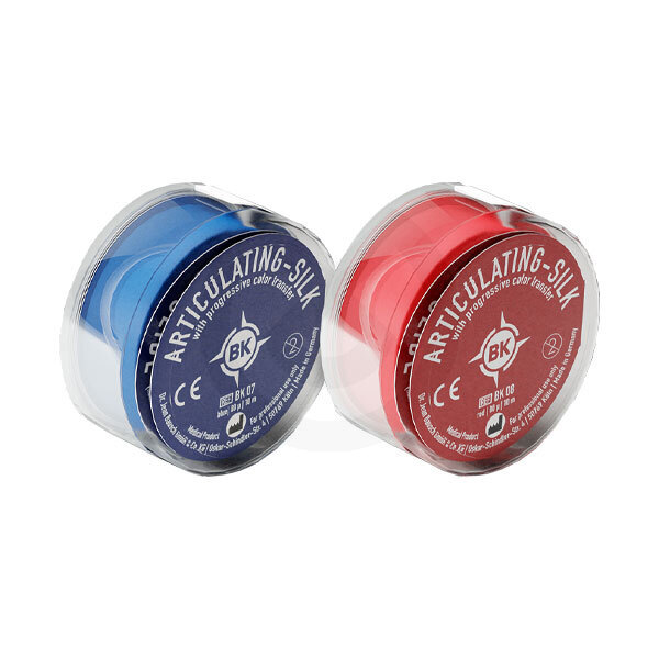 La Seda de articular Bausch es una seda fina con las mismas propiedades que nuestro papel de articular con coloración progresiva de 200 micras. La seda es absolutamente resistente al rompimiento y se adapta perfectamente, por su bajo calibre y flexibilidad, a las cúspides y fisuras. La marcación de seda es sumamente precisa y por eso apropiada para preparaciones más finas.