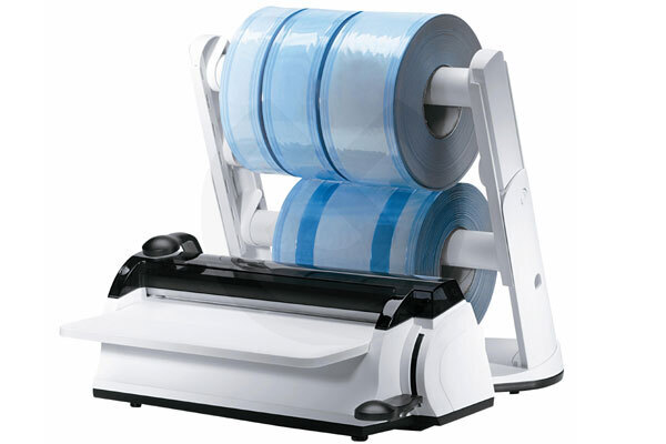 Tapa transparente en policarbonato para el control visual de sellado. Doble porta rollos para usar simultáneamente varios rollos de esterilización, se puede colgar en la pared también. Ajuste de la altura y la profundidad del porta rollos de manera que se adapte a las necesidades propias de cada clinica dental. Plano de apoyo integrado para favorecer las maniobras de sellado y permitir el trabajo de modo más funcional. Mecanismo de bloqueo antirretorno del rollo. Mecanismo de seguridad contra posibles quemaduras del rollo. Señales acústicas y luminosas de aviso durante el uso.