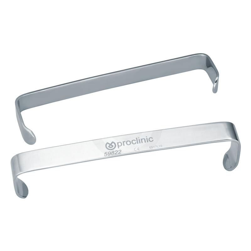 Separador para mejillas, labio y lengua. Fabricado en acero. Dispone de parte fina y parte ancha. Longitud: 13 cm.